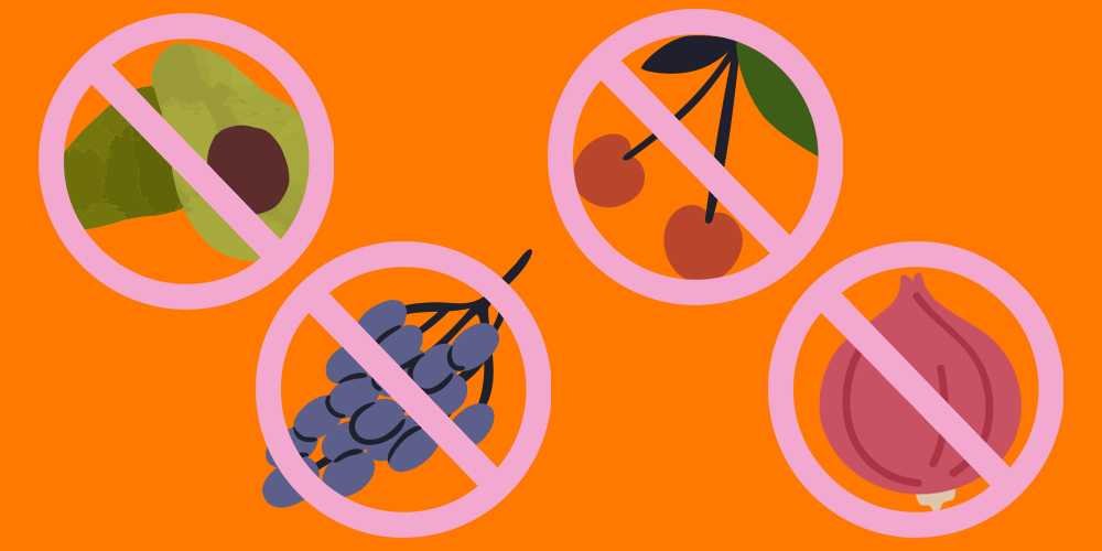 Onions: Again, another not-fruit on our list, but definitely a veggie worth flagging! Part of the plant genus Allium, onions, leeks, garlic, and chives are poisonous to pets. If consumed in large enough quantities, it can lead to vomiting, diarrhea, nausea, stomach discomfort, and other GI issues.